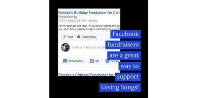 Please consider Giving Songs on your next birthday or any other time you would like to create a Facebook fundraiser.